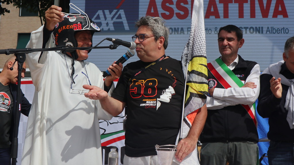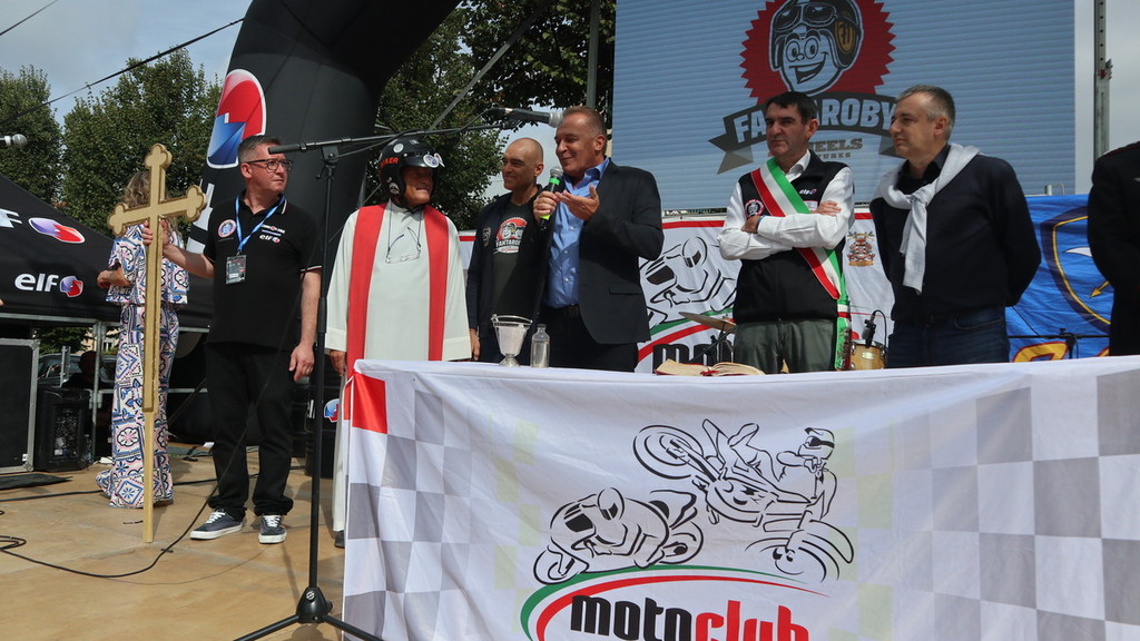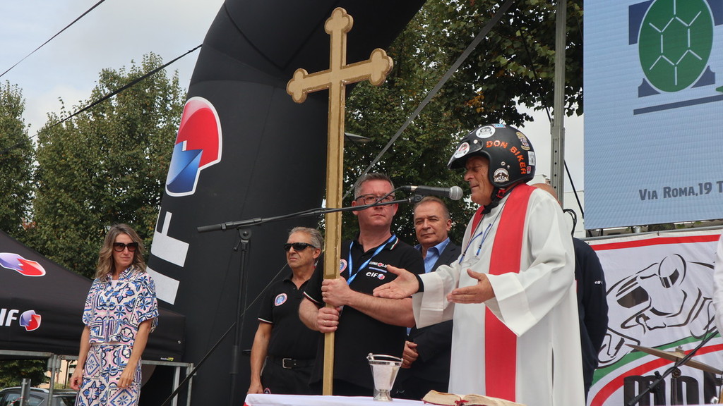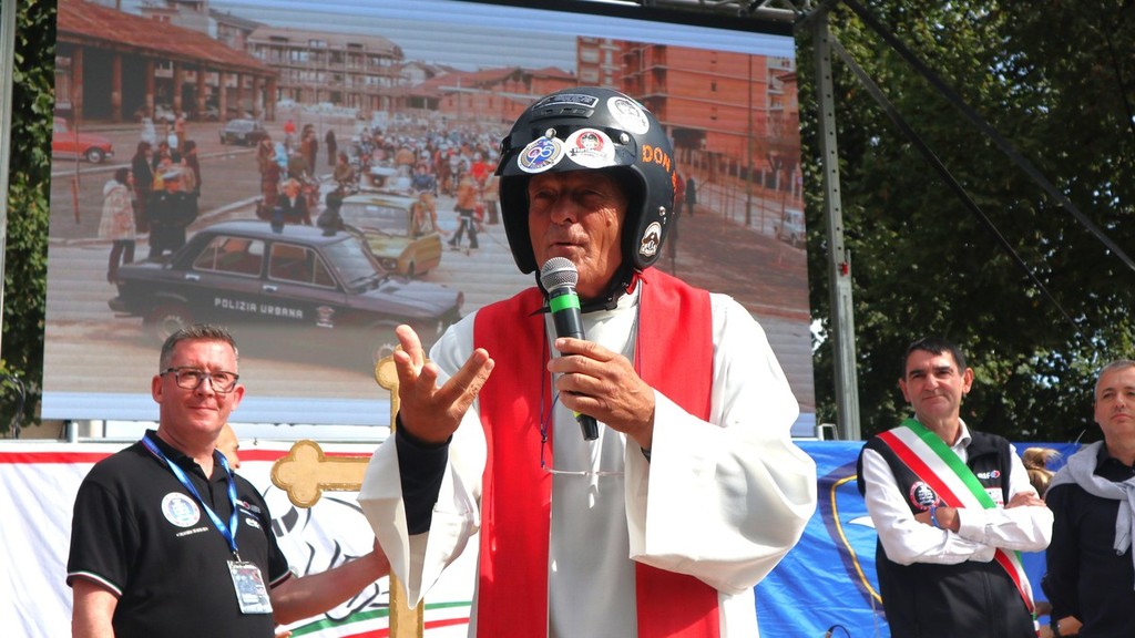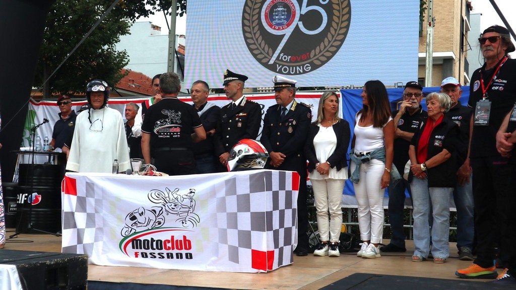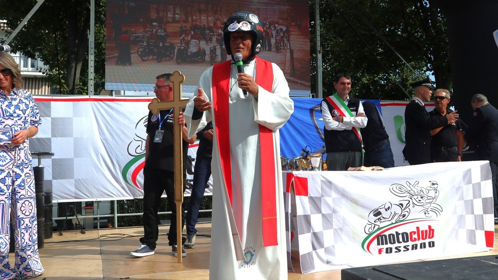 Piazza Diaz e parco cittadino oggi gremiti di pubblico per l’accoppiata “Motofestival” e “Sport in piazza” a Fossano. Immancabile all’appuntamento per la benedizione dei motociclisti e dei mezzi “don Biker”, al secolo don Mario Dompé, sacerdote di Morozzo. Così come di Morozzo è il presidente del Moto Club Fossano Gianni Mina, alle redini di un’associazione che proprio quest’anno ha celebrato i suoi 95 anni di fondazione.