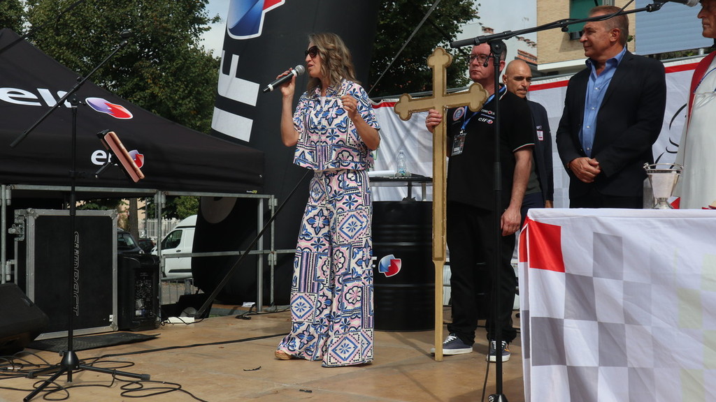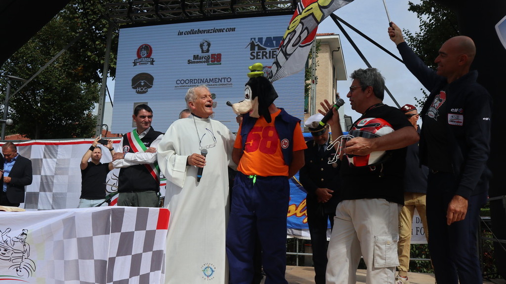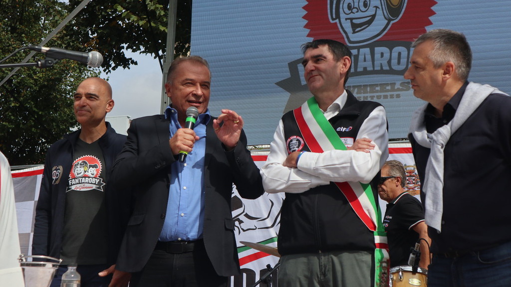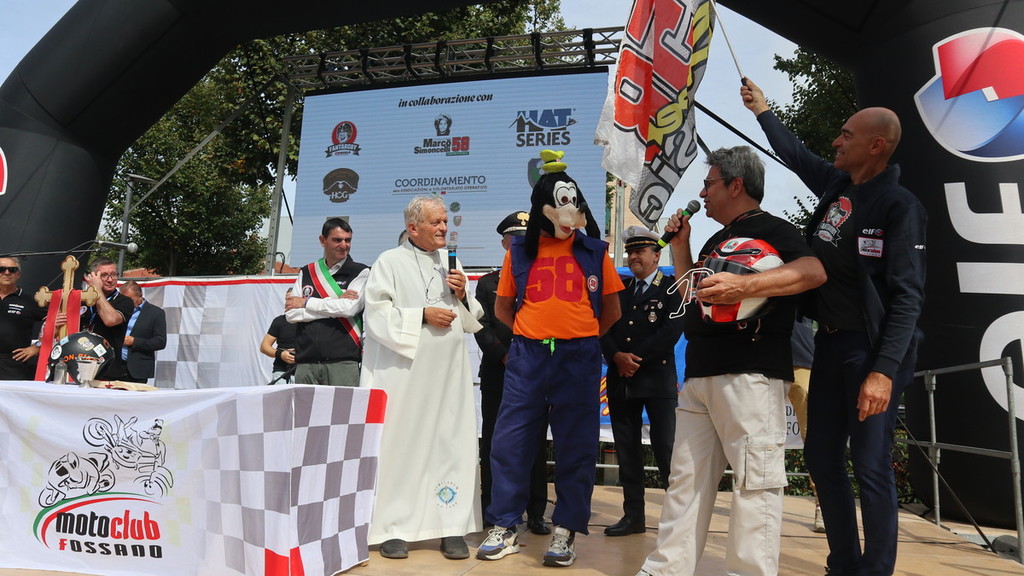 Per l’occasione, a precedere il primo apprezzato lancio dei paracadutisti, la voce della cantante e artista della Fondazione Fossano Musica Raffaella Buzzi, che ha intonato i brani “L’anima vola” di Elisa, “La vita è bella” (testo tradotto in italiano tratto dal celebre e omonimo film di Roberto Benigni) e “Imagine” di Paul McCartney. Inoltre i commenti di tutto lo staff del Moto Club Fossano, accompagnato dalle autorità. In primis il sindaco fossanese Dario Tallone, poi l’assessore regionale allo Sport Paolo Bongioanni, l’omologo fossanese Danilo Toti, la vice sindaca Donatella Rattalino, la presidente del Consiglio Comunale Simona Giaccardi, nonché i membri dello storico sodalizio che lega il Moto Club alla Fondazione Marco Simoncelli, del compianto motoclistica di MotoGP Marco ‘Sic’ Simoncelli.