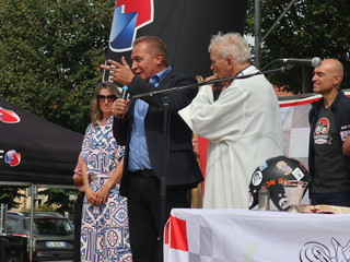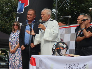 Piazza Diaz e parco cittadino oggi gremiti di pubblico per l’accoppiata “Motofestival” e “Sport in piazza” a Fossano. Immancabile all’appuntamento per la benedizione dei motociclisti e dei mezzi “don Biker”, al secolo don Mario Dompé, sacerdote di Morozzo. Così come di Morozzo è il presidente del Moto Club Fossano Gianni Mina, alle redini di un’associazione che proprio quest’anno ha celebrato i suoi 95 anni di fondazione.