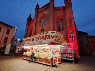 Il palchetto, il torrone, il profumo dello zucchero, il galletto Sebaste, simbolo della festa, hanno trasformato per una serata piazza Duomo nel teatro di una festa di paese. Una scenografia suggestiva che meriterebbe di essere ripetuta molto più spesso e non solamente ogni 10 anni in occasione del compleanno dell’azienda del torrone che nel frattempo ha iniziato a sfornare anche meravigliosi tartufini e altre prelibatezze che hanno permesso di diversificare e dare ulteriore stabilità.