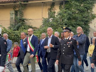 Il corteo, partito dal Duomo di Piazza, ha visto la presenza di tanti amministratori, tra questi il primo cittadino di Mondovì Luca Robaldo, tanti sindaci del territorio, il senatore Giorgio Maria Bergesio, le autorità religione, civili e militari.