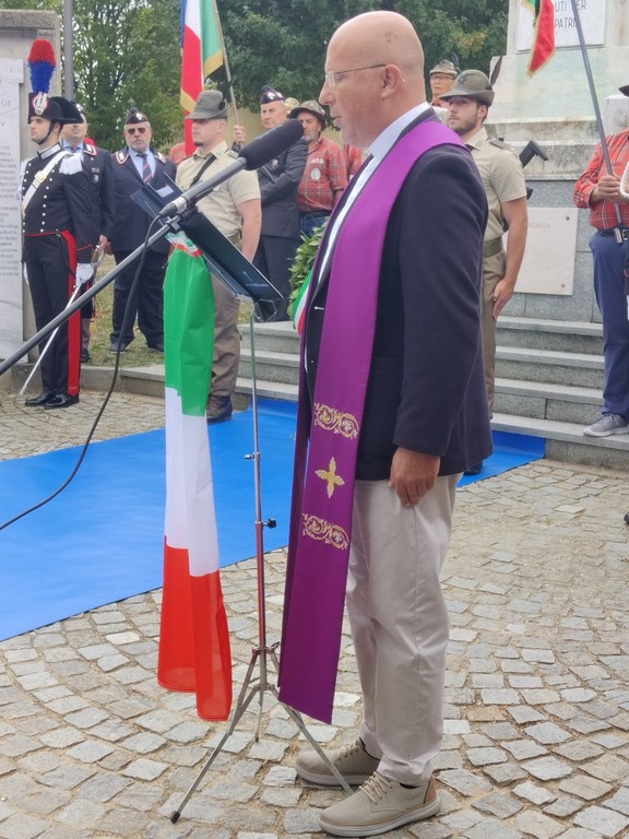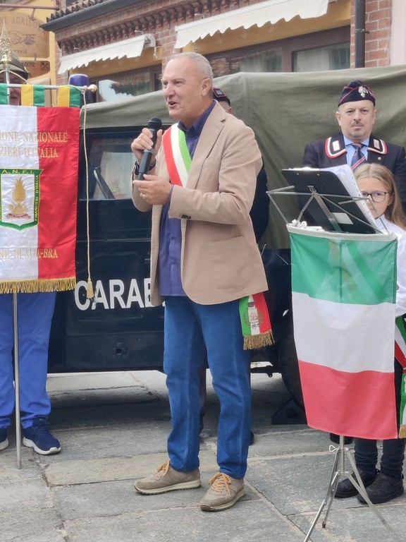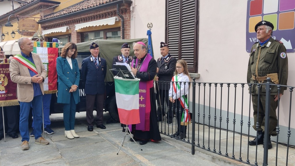 È intervenuto il cappellano militare Don Diego Maritano e sono stati letti i messaggi giunti dal ministro della Difesa Guido Crosetto e dal prefetto di Cuneo Mariano Savastano.