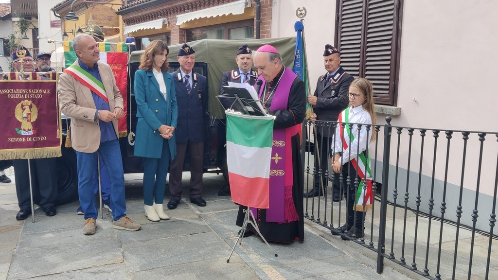 La targa commemorativa posta davanti all’ex caserma CC è stata benedetta dal vescovo di Alba, monsignor Marco Brunetti.