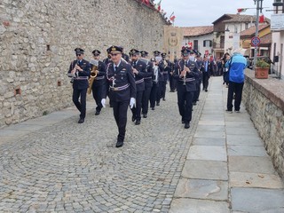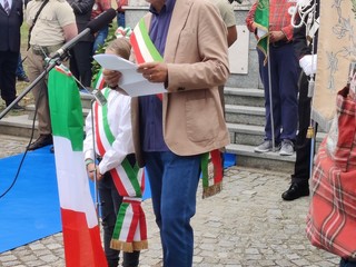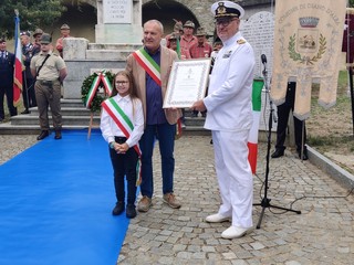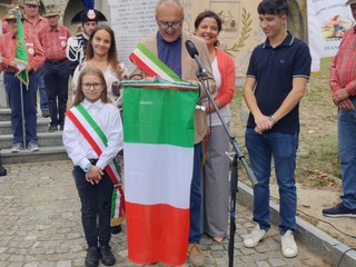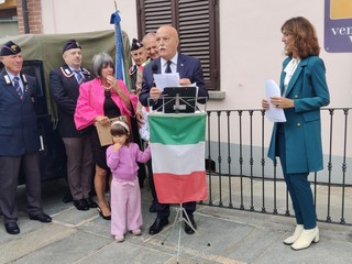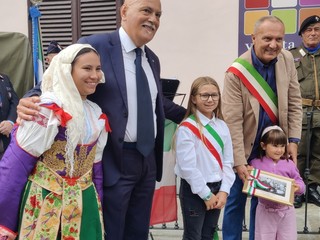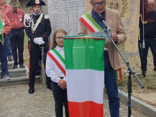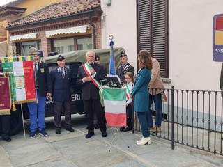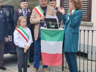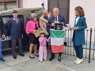 Accompagnata dalla fanfara dell’Aeronautica Militare, accanto al picchetto d’onore del 2° Reggimento Alpini di Cuneo, la prima parte del cerimoniale ha visto la deposizione di una corona di alloro al Monumento dei Caduti da parte del primo cittadino e della piccola sindaca dei ragazzi Gloria Proglio.