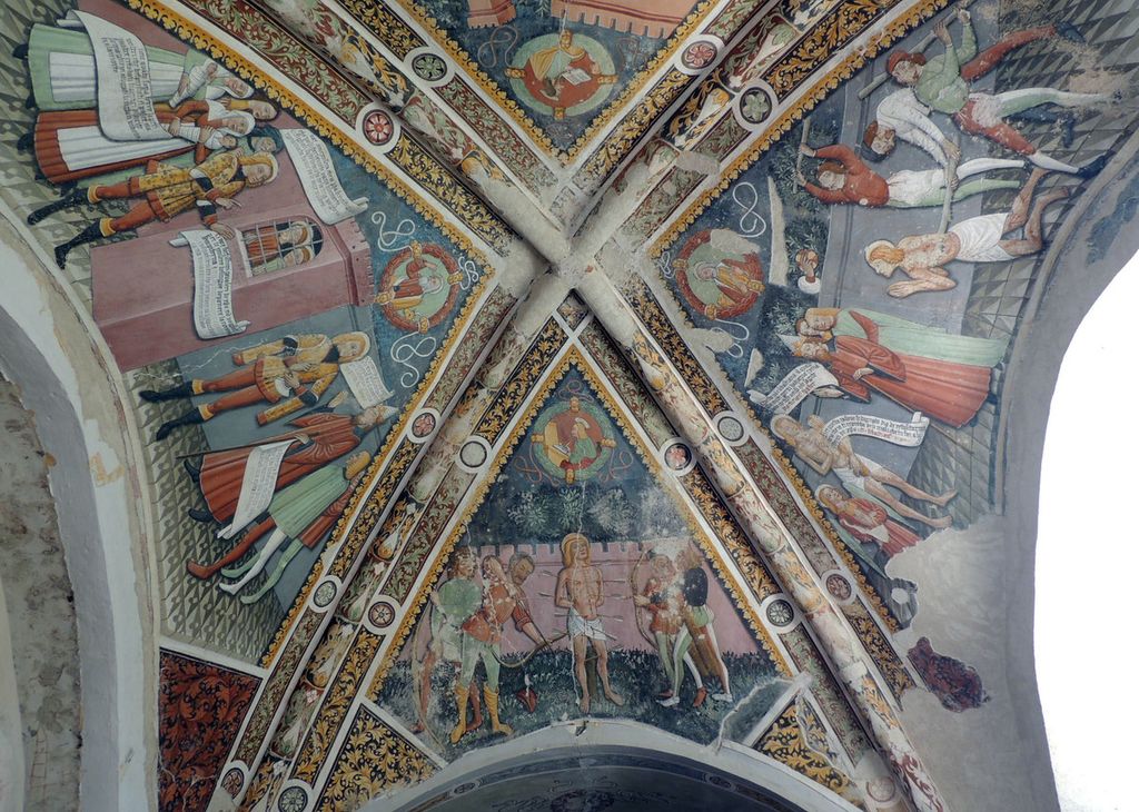 -) Cappella di San Sebastiano, risalente al sec XI, con affreschi dei pittori Biazaci del sec XV.