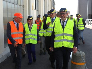 Oggi lo storico sito saviglianese ha vissuto una giornata memorabile, ricevendo la visita del ministro per gli Affari europei, le Politiche di coesione e PNRR Tommaso Foti, accompagnato dal sottosegretario alla Giustizia Andrea Delmastro, dalla vice presidente della Regione Piemonte Elena Chiorino, dall’europarlamentare Giovanni Crosetto, dall’amministratore delegato Alstom Michele Viale (e il responsabile Rolling Stock Roberto Balbis) e dai sindaci di Savigliano Antonello Portera, di Racconigi Valerio Oderda, di Marene Alberto Deninotti e altre autorità.