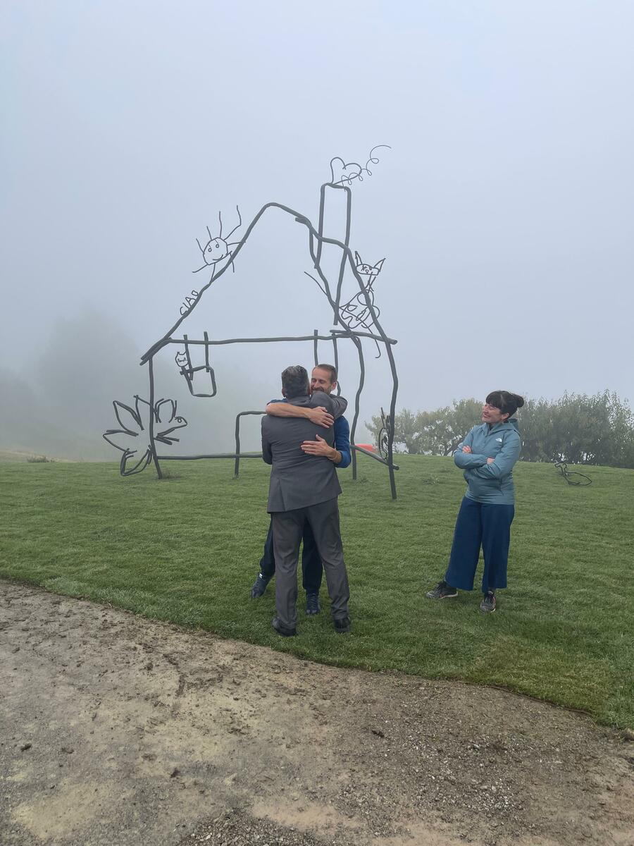 “Siamo felici di inaugurare l’opera della seconda edizione di Radis, un progetto a cui la Fondazione Arte CRT dedica particolare attenzione e che ha l’obiettivo di lasciare una traccia significativa e duratura nel territorio di Dogliani e della nostra regione” dichiara Patrizia Sandretto Re Rebaudengo, Presidente della Fondazione Arte CRT, rappresentata all'anteprima per la stampa dal segretario generale Luigi Cerutti. “L’opera di Petrit Halilaj interpreta questo impegno: è un lavoro nato per connettere luoghi e comunità apparentemente distanti – le Langhe e i Balcani – avvicinati dal linguaggio comune dell’immaginario e della fantasia infantile. L’artista ha tradotto i disegni dei bambini e delle bambine, tracciati sui banchi di scuola, in una scultura permanente, capace di arricchire il paesaggio e di dialogare con la storia del luogo. Sono convinta che questa installazione saprà coniugare memoria e prospettiva, offrendo alla collettività un nuovo spazio di riflessione e di condivisione.”