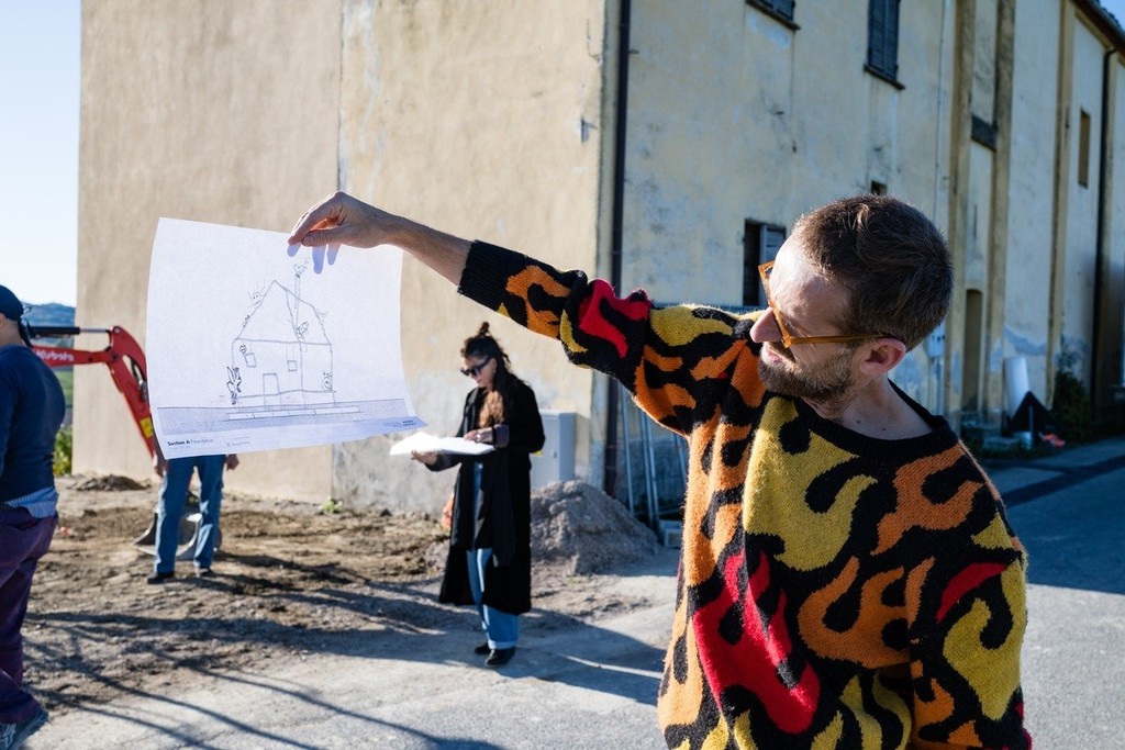 “Abetare (un giorno a scuola) di Petrit Halilaj è la seconda opera del programma di arte pubblica Radis,” dichiara la curatrice Marta Papini. “La prima – le masche di Giulia Cenci – aveva reso omaggio alle storie sedimentate nella radura del Chiot Rosa: storie di resistenza, paura, gioia, storie d’amore e odio, storie di animali e piante. L'opera di Petrit Halilaj ci dischiude un altro mondo di storie, quello dell'infanzia. Abetare (un giorno a scuola) è un inno alla libertà e all'immaginazione: una casa popolata da creature disegnate sui banchi di scuola delle Langhe e dei Balcani. Un incontro di culture che diventa una celebrazione gioiosa della fantasia e del gioco di bambine e bambini di ogni luogo e di ogni tempo.”
