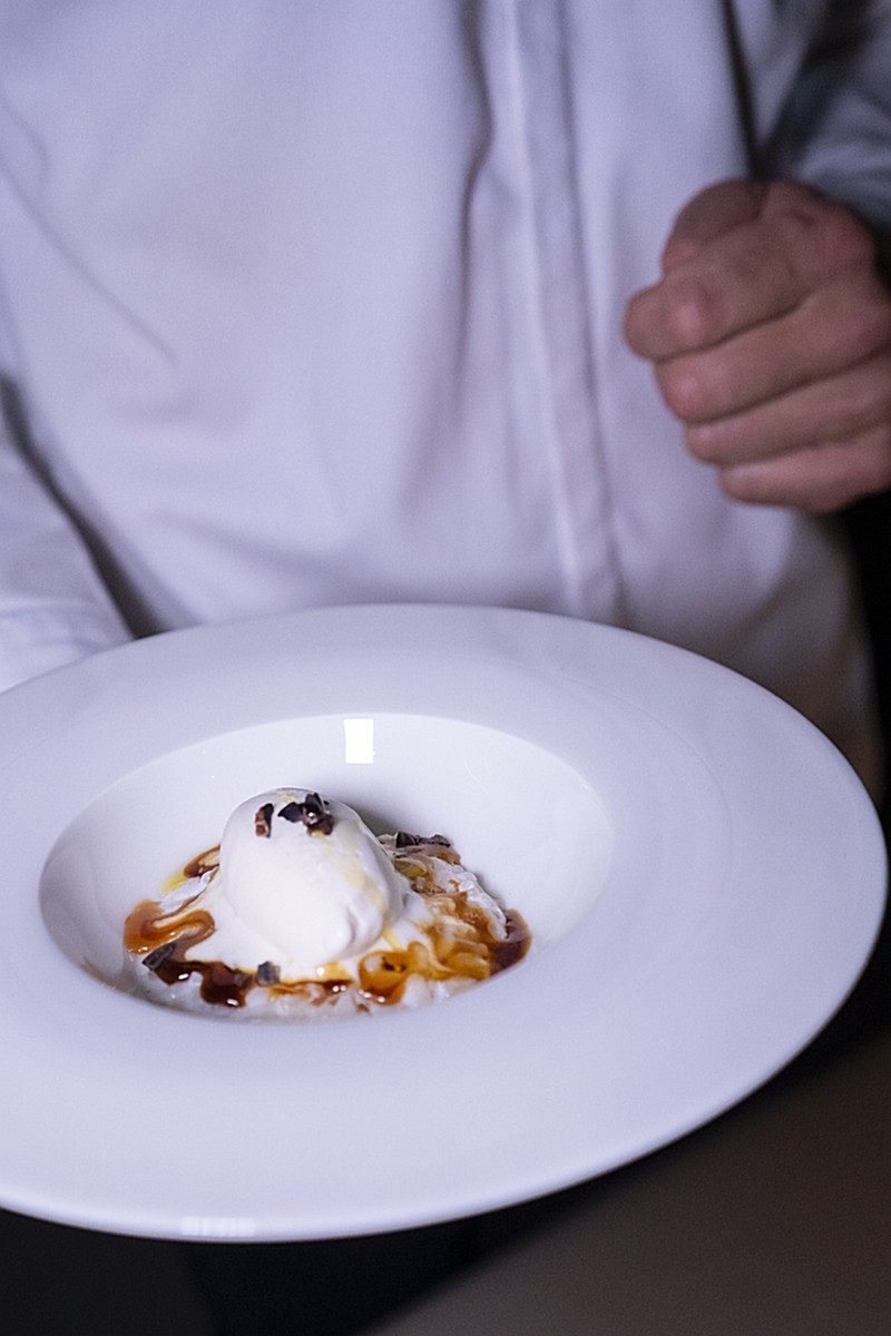 · Luca Mozzanica, Resident Chef del Ristorante Amandus di Villa Lario Resort, ha concluso con un sorprendente dessert: Riso e latte ghiacciato con caramello balsamico croccante, perfetta sintesi di eleganza e originalità.