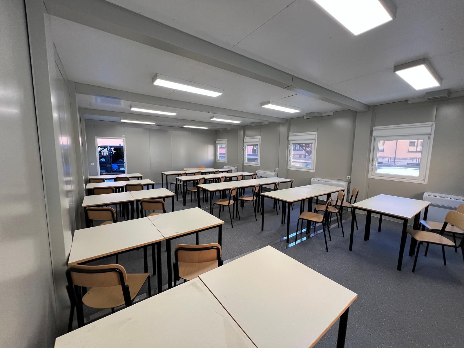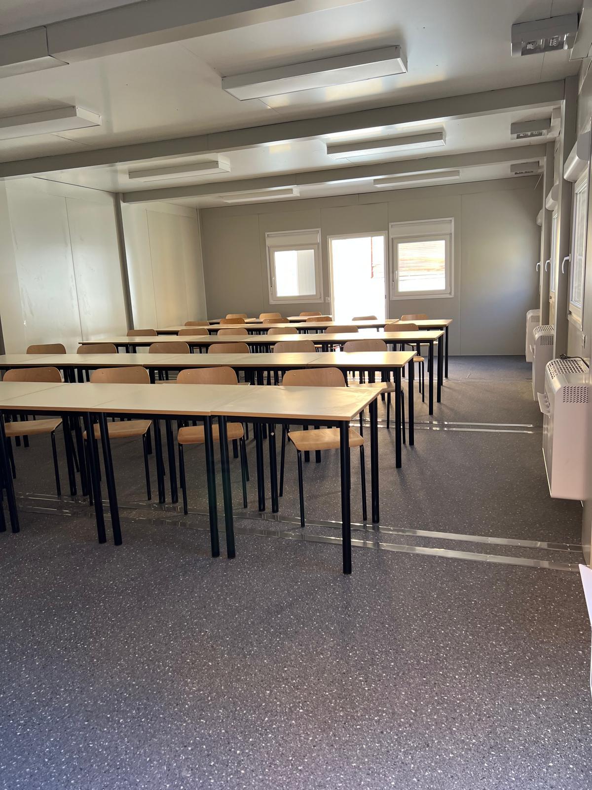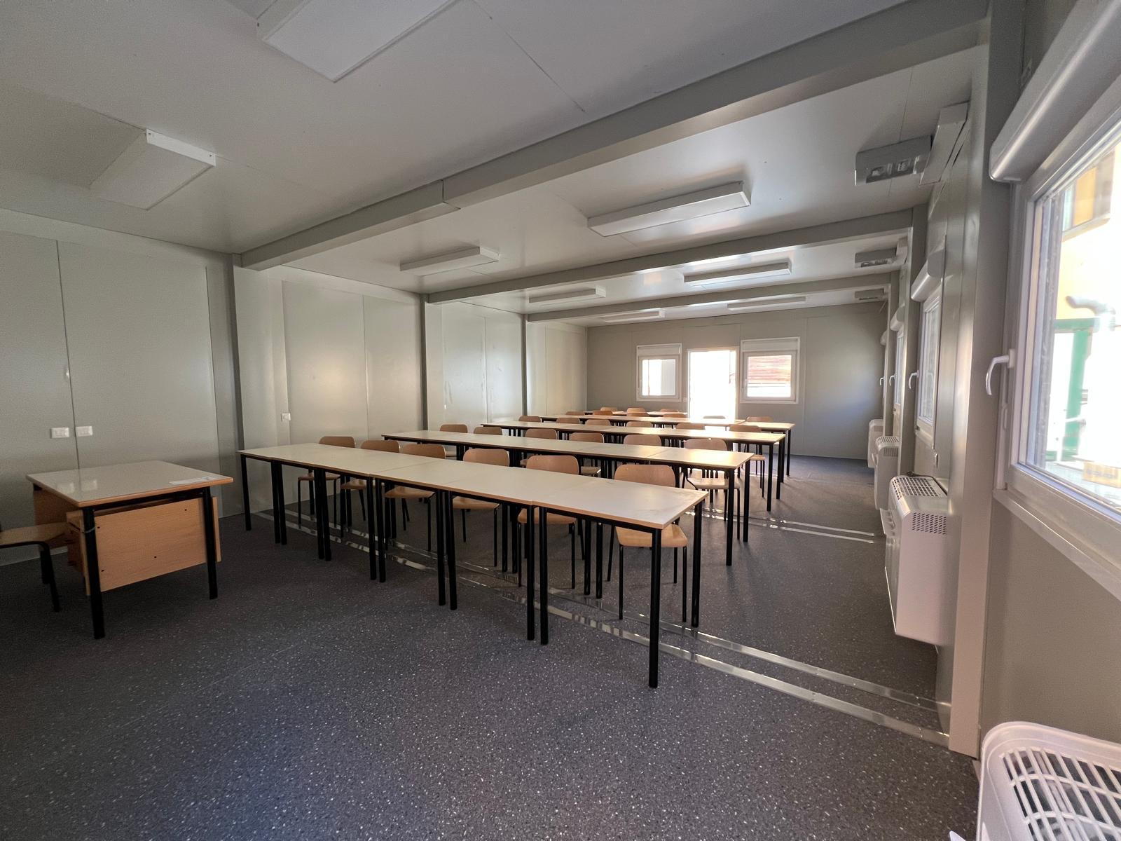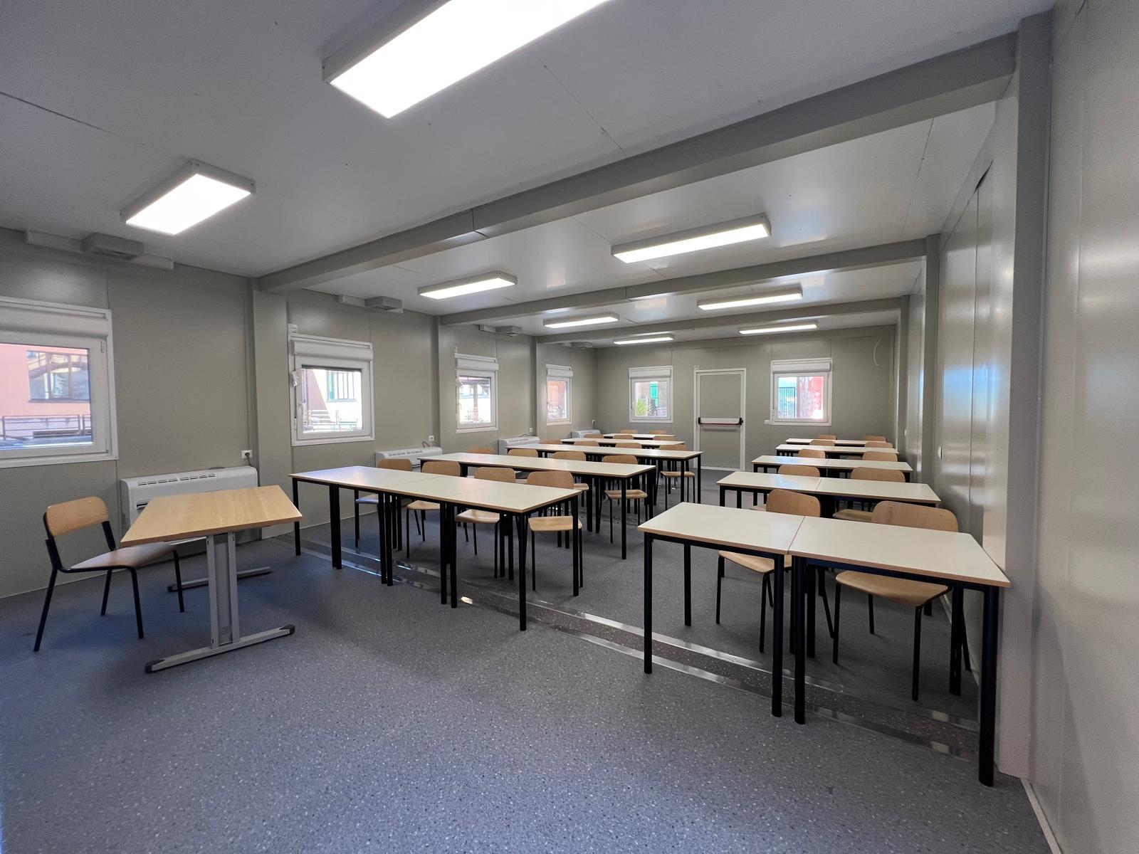 Si tratta di 20 moduli prefabbricati per la realizzazione di 5 aule, oltre al locale bidelleria e ai servizi igienici.