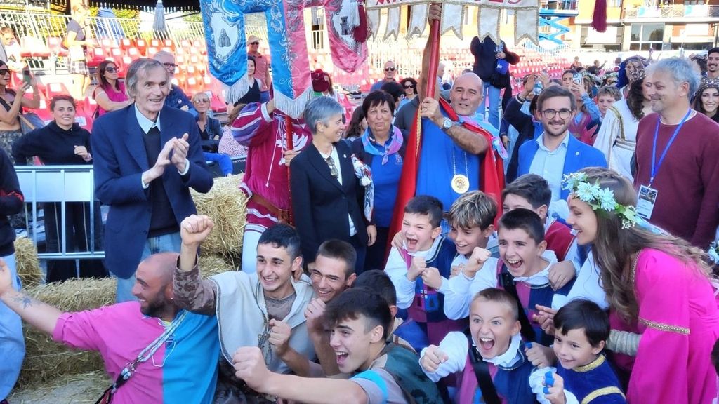Il rione dagli smalti azzurri, rosa e argento, guidato dal presidente Fabrizio Campegotti, rimane così saldamente in testa all’albo d’oro con 15 vittorie. A loro è andato il Drappo del Palio dipinto dall’albese Enzo Mastrangelo.