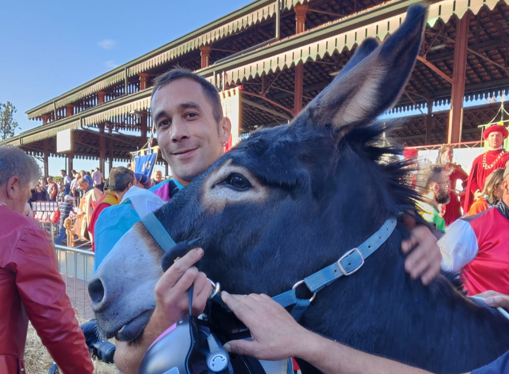 Tre vittorie negli ultimi quattro anni. E’ l’invidiabile bottino che Brichèt porta a casa dopo la vittoria che Gianluca Zahnd, nome di fantasia Rombo, primo sul traguardo a cavallo del ciucchino Tuono, ha portato agli smalti azzurri, rosa e argento conquistando l’edizione 2025 del Palio degli Asini.