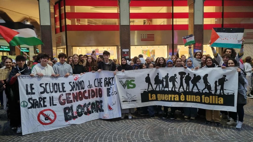 Una consapevolezza che risuonava negli interventi all’altoparlante e negli striscioni: “Fate silenzio quando i bimbi dormono non quando muoiono”, “La guerra è una follia”, “Palestina libera”. E un messaggio: “Le scuole sanno da che parte stare, il genocidio è da bloccare”.
