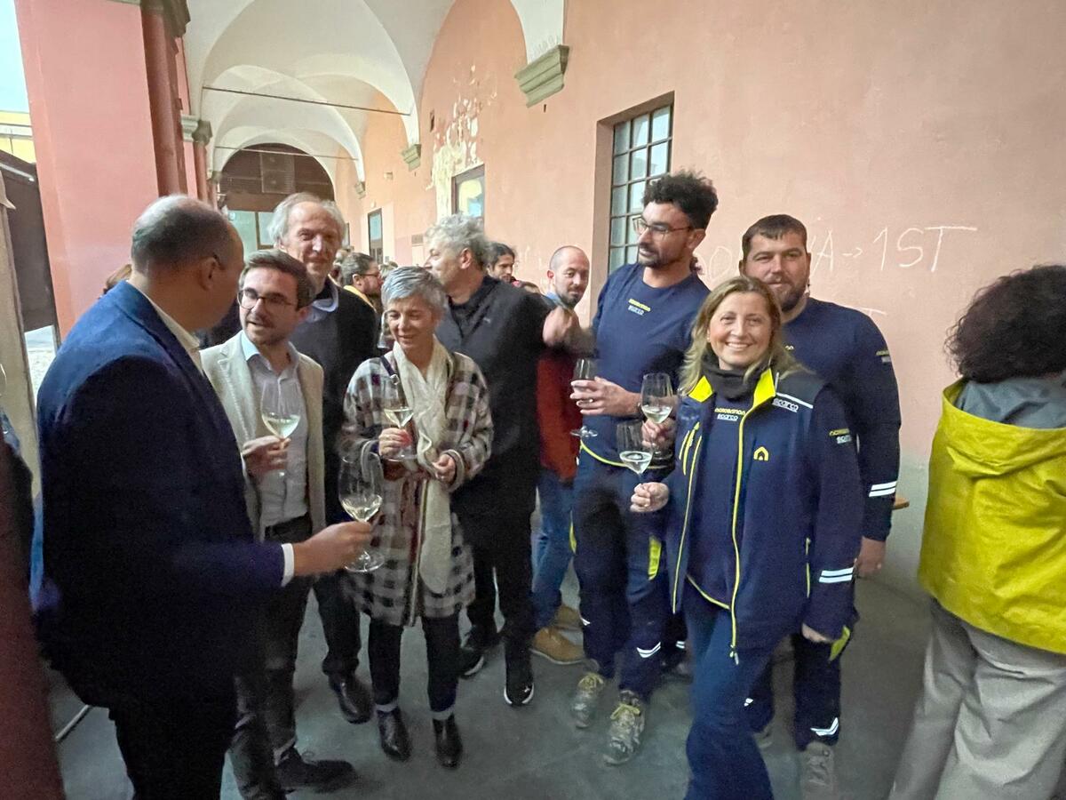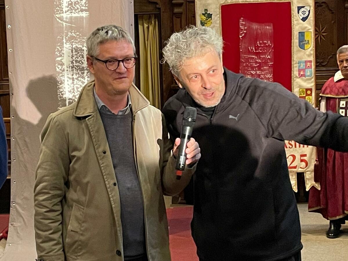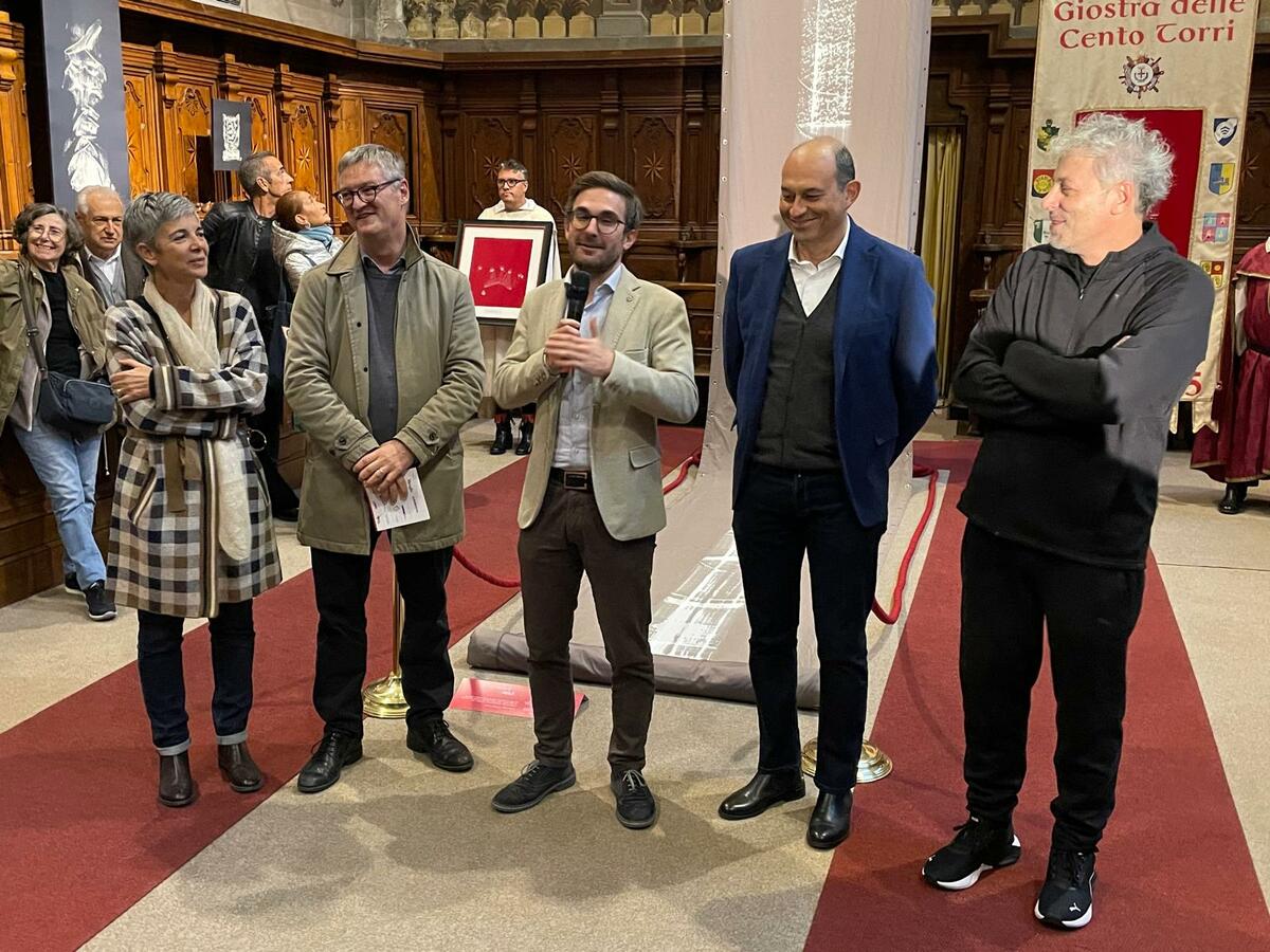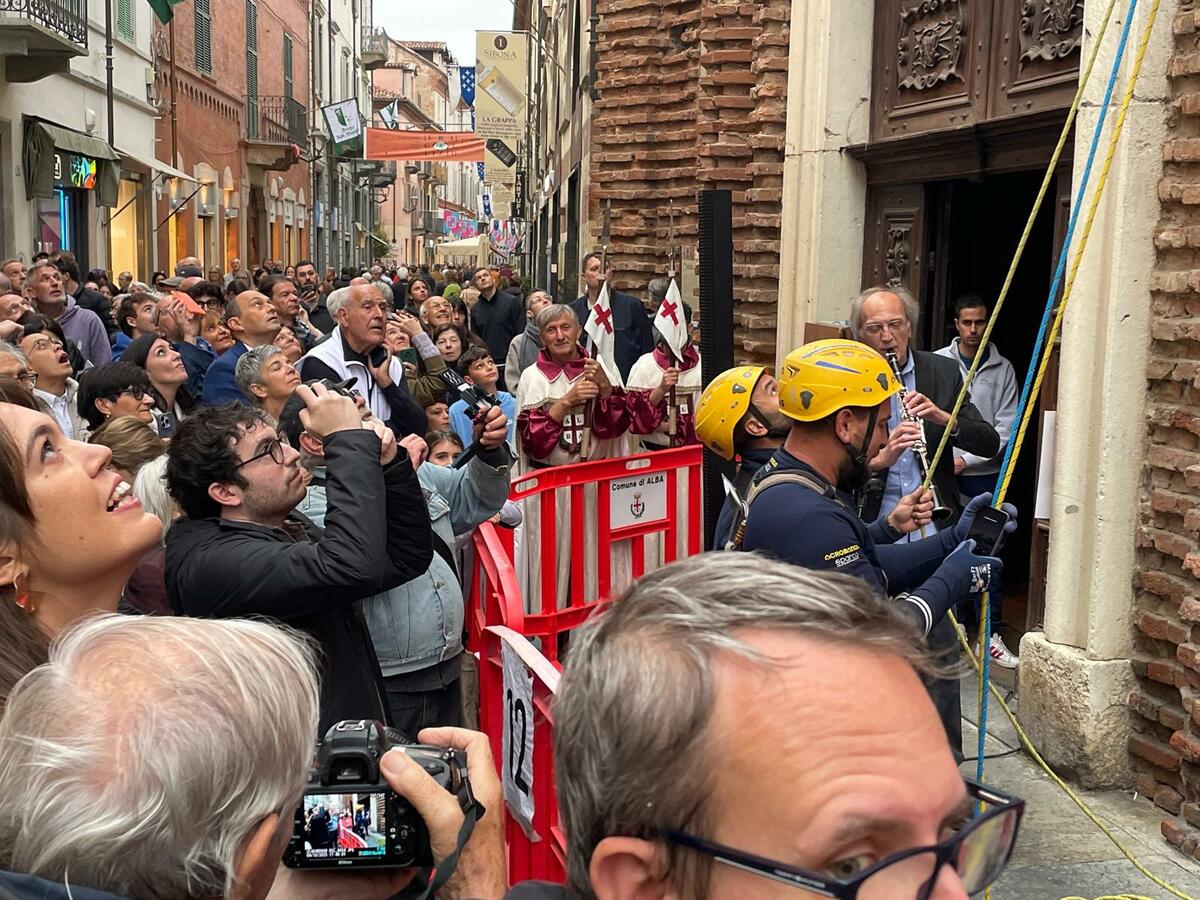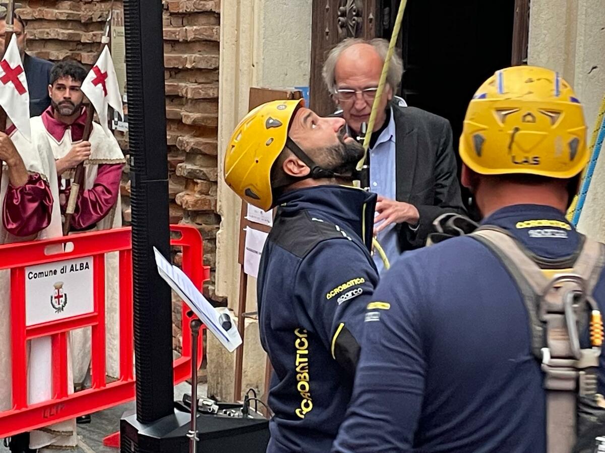 Tra le autorità presenti all’evento, il sindaco della città di Alba Alberto Gatto, l’assessore alla cultura Caterina Pasini, il presidente della Giostra delle Cento Torri Luca Sensibile. Commento sonoro al clarinetto, per accompagnare le diverse fasi della performance, il Tre Lilu Piero Ponzo.