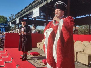 Una splendida giornata di sole quella che ad Alba va accompagnando lo spettacolare rituale che porta alla disputa del Palio degli Asini, la disfida tra i nove borghi cittadini che tradizionalmente anticipa l’apertura della Fiera Internazionale del Tartufo Bianco d’Alba.
