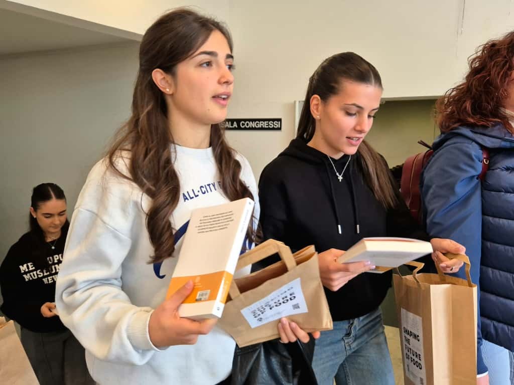 L’Università delle Scienze Gastronomiche di Pollenzo, che ha organizzato la conferenza insieme all’Istituto di istruzione superiore Govone-Gallizio, ha voluto affidare agli studenti un ricordo concreto della conferenza: il libro “Seminare il futuro” (di Ceccarelli-Grando), donato a ciascuno dei presenti.