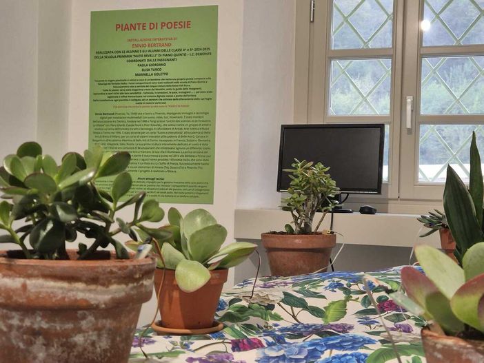 Piante che recitano brevi versi di poesie in stile Haiku con la voce dei bimbi delle classi quarta e quinta elementare, dello scorso anno scolastico, del plesso di Piano Quinto.