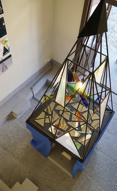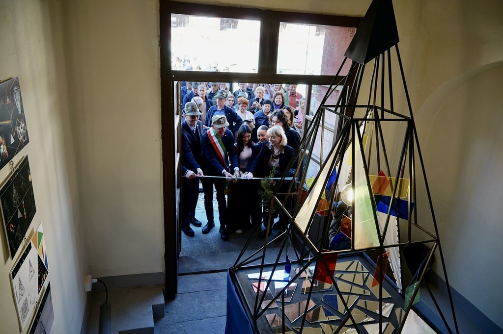 "Un ‘opera molto cara alla scuola in quanto selezionata dal Ministero, dal titolo "Find the light" ha spiegato la dirigente del liceo Alessandra Tugnoli - titolo il cui significato porta alla ricerca della luce intesa come bene comune, strettamente legata al valore del sacrificio che Mario Musso offrì al proprio paese. Una piramide in acciaio, plexiglass e tessuto che vuole rappresentare per i tanti guovani che frequentano la caserma, sede della scuola, un messaggio di incoraggiamento a cercare la luce per sè e il miglioramento della società".