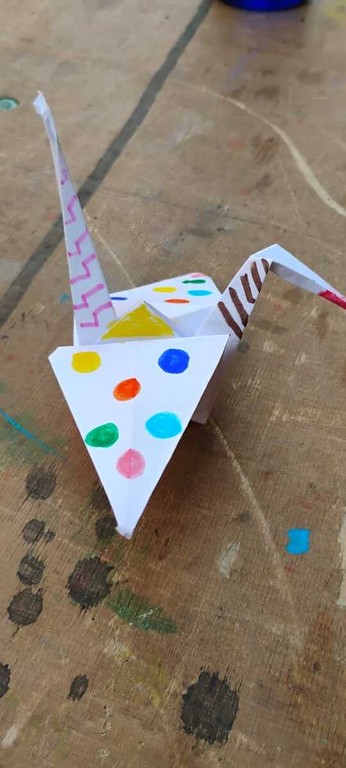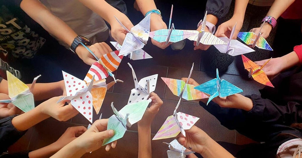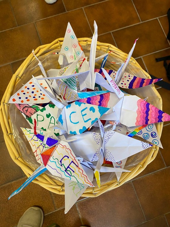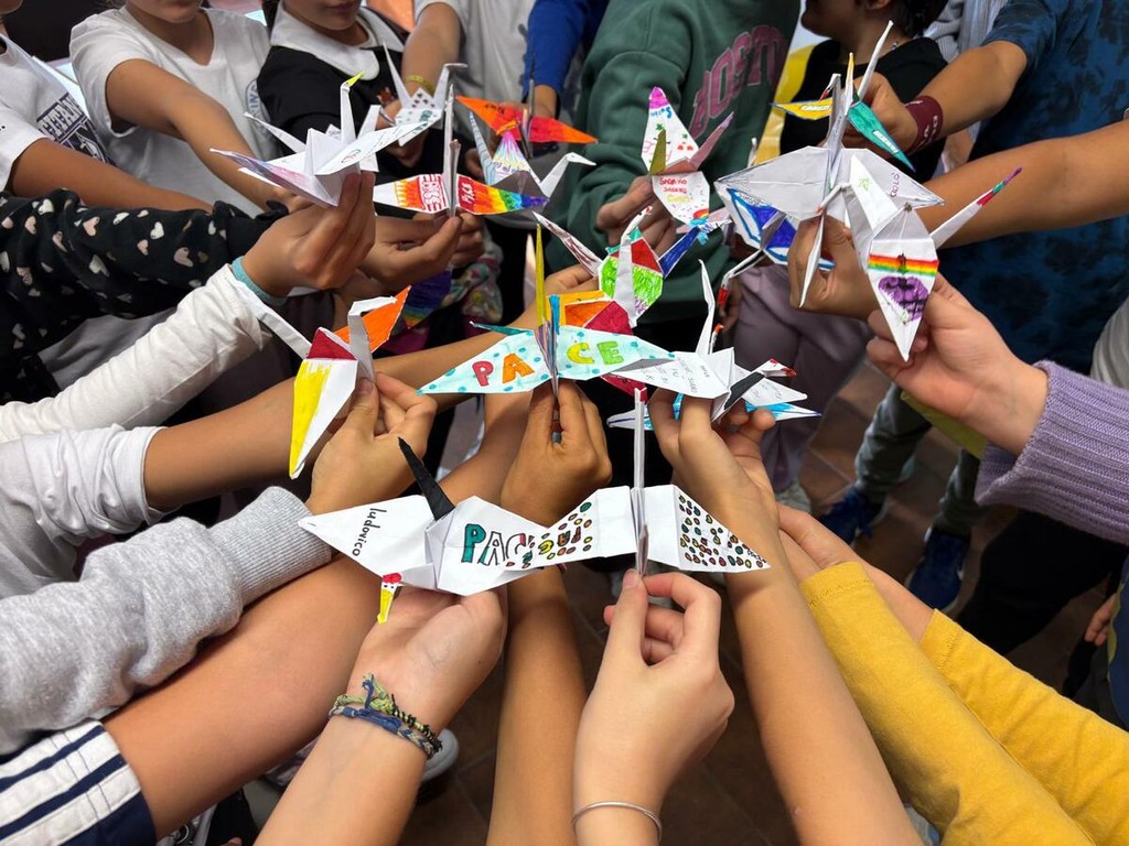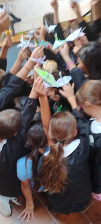 Ora, con le quinte elementari dei vari complessi scolastici della città di Alba, i bambini e le bambine, aiutano Sadako a realizzare non solo gli origami mancanti, ma a farne molti di più, con il messaggio di voler la pace, di bandire le guerre, di non vedere più bambini e famiglie soffrire a causa dei conflitti, per un mondo di convivenza, di rispetto partendo dal proprio quotidiano.