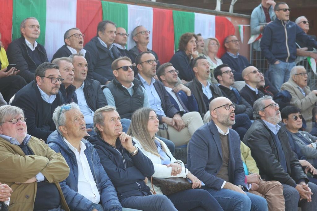 [Presidente regionale Cirio e l'assessore Bongioanni alla finale scudetto di Pallapugno Campionato Italiano 2025 - foto di Giacone (FIPAV)]