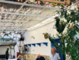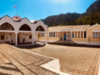 Pochi metri più in alto, una piazzetta si apre all’improvviso: tavoli di legno, un muro bianco con una sola parola scritta in nero — “Mediterraneo”. È impossibile non pensare al film di Gabriele Salvatores, girato qui e premiato con l’Oscar. Una storia di uomini sospesi tra la guerra e una terra remota che li disarma, prima ancora di accoglierli. Quella scritta non è decorazione: è memoria sedimentata, più incisiva di qualunque brochure. Attorno, muri scrostati e facciate restaurate convivono senza spiegazioni; la scena è vuota e viva allo stesso tempo, come se qualcuno dovesse comparire da un momento all’altro. Poco distante si trova la Santrapeia School, fondata nel 1903 della diaspora greca che è uno degli edifici simbolo di Kastellorizo. La sua architettura neoclassica, con colonne e timpano, testimonia il periodo di grande sviluppo a inizio Novecento, quando cultura e commercio fiorivano grazie alla posizione strategica e al momento storico. Oggi l’edificio resta un punto di riferimento solo identitario per gli abitanti.