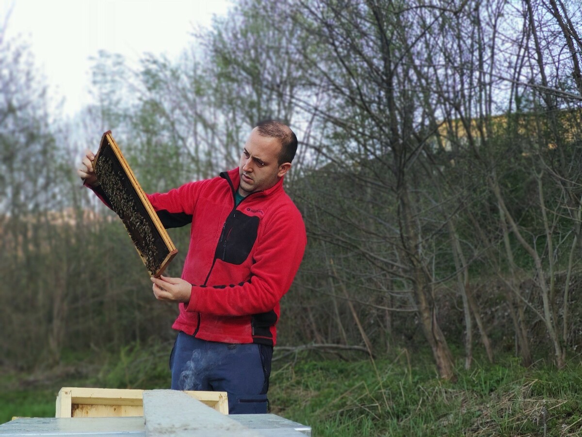 “Il clima ormai è irregolare, le api lo sentono prima di noi,” racconta. “Negli ultimi anni ho visto cambiare tutto: primavere che non arrivano, piogge continue, inverni senza neve. Noi in montagna produciamo miele da aprile a luglio: se piove, se fa freddo, se le fioriture saltano, si perde la stagione”. Eppure lui non molla. Sorride, scuote la testa, dice solo: “Le api insegnano la pazienza. Ti obbligano ad accettare che non puoi controllare tutto.”