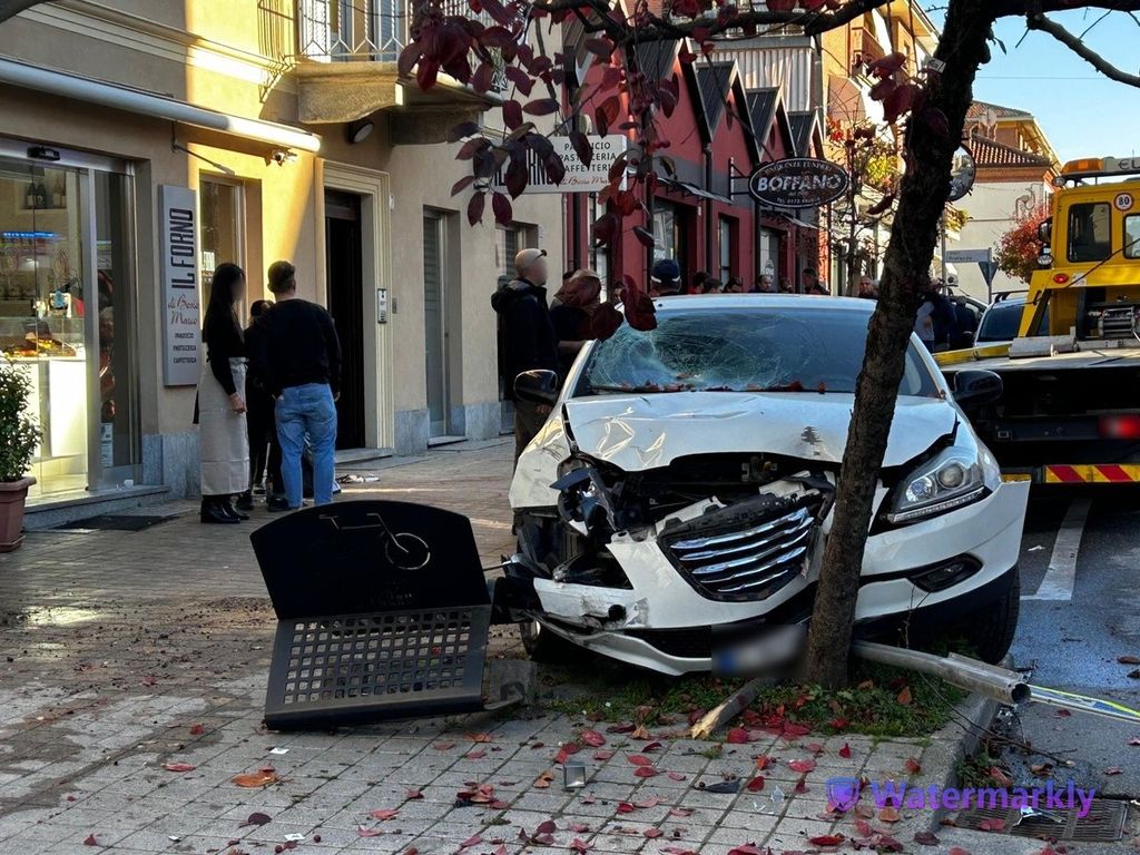 L’incidente poco prima delle 14. Il veicolo è uscito di strada andando a investire i tavolini di una panetteria pasticceria al civico 17. Tre le persone coinvolte, una in codice giallo