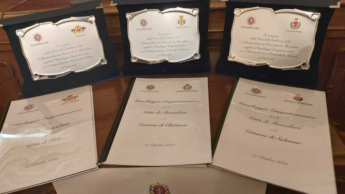 Siglato lunedì scorso 27 ottobre l’accordo nel Comune di Moncalieri per il prestigioso “gemellaggio gastronomico” con Bra, Cherasco e Salmour, in una serata che anticipava l’ormai classica “Cena delle eccellenze”, svoltasi subito dopo al Palaexpo (l’ex Foro Boario), sempre nella grande realtà metropolitana stretta vicina di casa di Torino.
