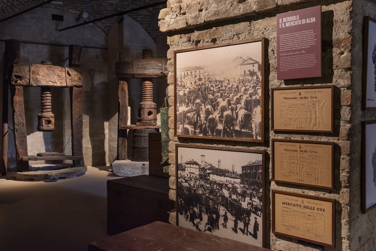 Al piano seminterrato, nelle cantine del Monastero, la prima parte del percorso raccoglie una selezione degli oggetti del museo etnografico di Ratti già realizzato nel ’70, con la Stanza dei torchi e alcuni elementi storici come le carrà, la brenta, le botti scavate dal tronco d’albero, le bottiglie. La trasmissione tradizionale della conoscenza cede poi il posto ai linguaggi più immediati della multimedialità. Una nuvola animata di marchi e loghi delle cantine di La Morra si confronta con una carta dinamica dei cru, fino a convergere in modo casuale sulle principali etichette del territorio. Si sfida in modo giocoso la memoria dei visitatori, facendo conoscere la platea dei cru insieme con il loro posizionamento geografico, contribuendo alla diffusione dell’importanza delle etichette e la conoscenza del territorio e dei terroir.