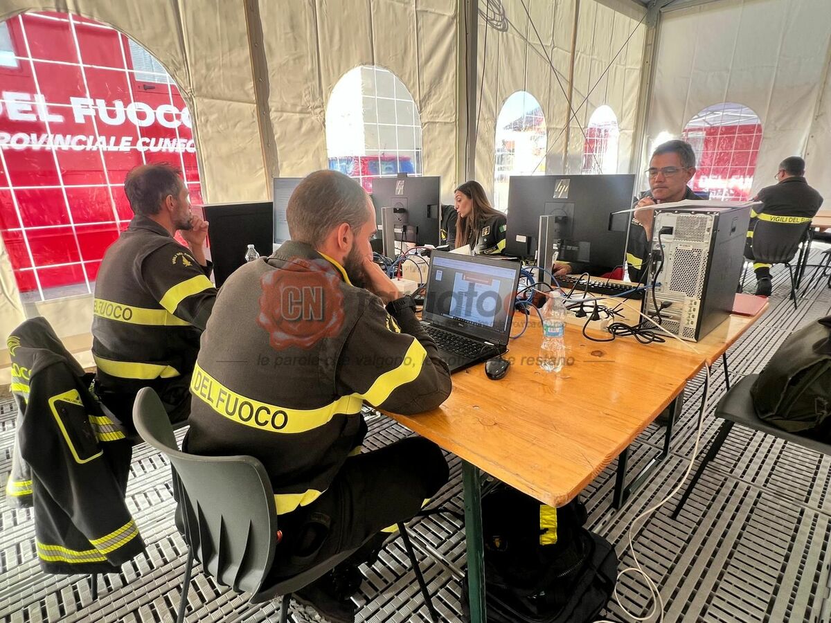 Il centro di comando avanzato è stato allestito a Borgo San Dalmazzo, dove è operativo il campo base che coordina tutti i comandi e dove si alterneranno circa 150 vigili del fuoco. Sono circa 300 quelli coinvolti a livello regionale.