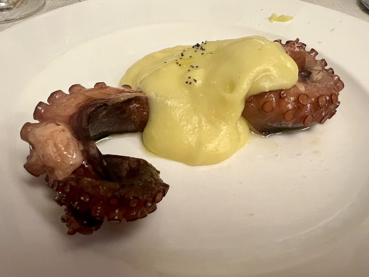 Ottimo poi, per morbidezza e cottura, il Tentacolo di polpo esaltato, quasi per contrasto, da un avvolgente e gustoso purè di patate.