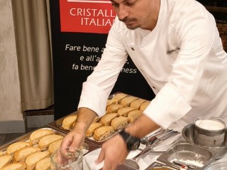 La Cena Didattica Incontro di Sapori di martedì 4 novembre con Giampiero Vento, Executive Chef del prestigioso ristorante del Relais Tenuta Montemagno, è stata l’occasione per inaugurare la nuova partnership di Alba Accademia Alberghiera con RCR Cristalleria Italiana.