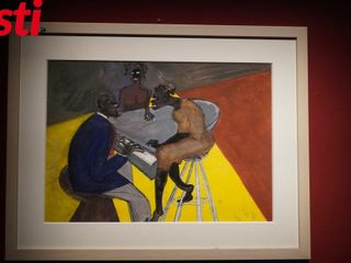 Il percorso espositivo, definito sotto la guida dello stesso Conte, spazia tra tecniche e soggetti diversi. Tra le opere più significative spicca Higginbotham del 1957, un omaggio a tempera e inchiostro a uno dei primi grandi trombonisti jazz.