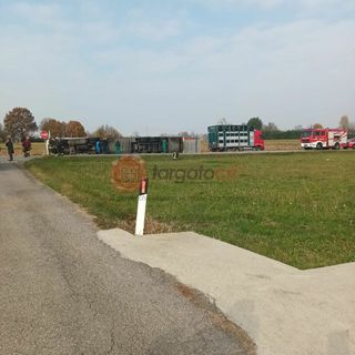 Mezzo pesante carico di tori si ribalta a Pianfei