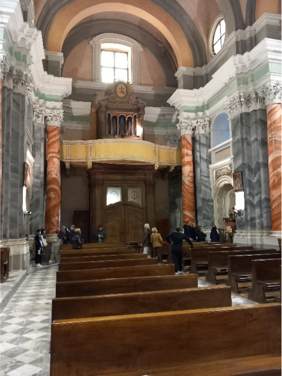 Infine, sopra l’ingresso principale, è collocato un organo del Settecento, racchiuso all’interno di una cassa di legno dipinta e decorata. Caterina, Davide, Giovanni, Luka e Vittoria ne hanno fatto sentire la sonorità, eseguendo brani che hanno spaziato: da “Swanee River” a “Lightly Row”; da “Battellieri dello Yang tze kiang” a “My Heart Will Go On”; da “Hallelujah” di Cohen a “Canzone Argentina”.