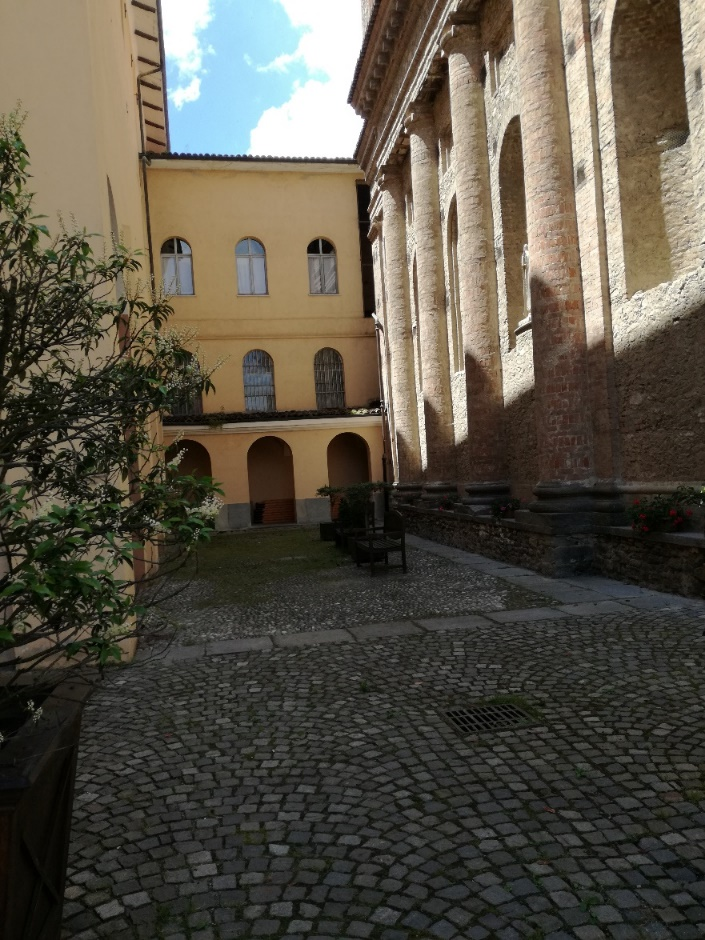 La camminata si è conclusa scendendo di nuovo a Borgo, ad osservare quanto rimane del Convento del Carmine, costruito in un sito donato nel 1480 da Ludovico I di Saluzzo, successore di Giovanni il Grande. Del grande complesso si conservano resti della chiesa: della navata di sinistra, che corrisponde all’attuale androne di accesso al Municipio; di quella centrale, coincidente con l’intercapedine tra il Palazzo Comunale e l’odierna chiesa dei SS. Quirico e Paolo; di strutture laterali oggi adibite a Sacrestia o ad ospitare il “Museo degli ex voto e della devozione popolare”.