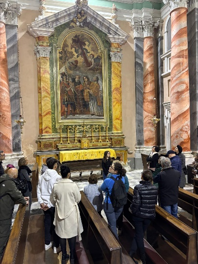 Dentro la chiesa il visitatore è stato guidato ad ammirare creazioni artistiche di pregio, risalenti addirittura al Seicento: sculture in gesso o legno; stucchi dorati, tele, dipinti.