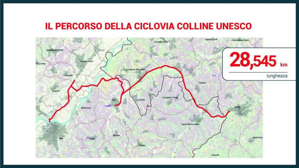 Risale al dicembre 2023 la decisione della Giunta comunale di partecipare al bando nella forma di un raggruppamento di Comuni guidato da Alba come capofila, insieme a Calosso, Canelli, Castagnito, Castagnole delle Lanze, Castiglione Tinella, Costigliole d’Asti, Guarene, Neive e Santo Stefano Belbo, con il progetto denominato “Percorso ciclabile Alba-Canelli”.