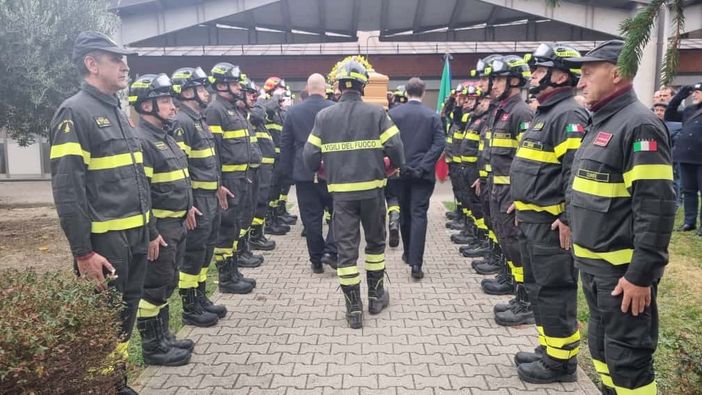 A Bra il funerale di Pier Giorgio Abellonio, capo reparto dei Vigili del Fuoco Volontari in congedo