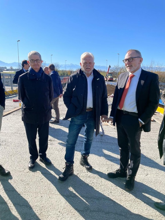 Oggi lunedì 17 novembre l’Amministratore Delegato di Anas Claudio Andrea Gemme ha visitato il cantiere della tangenziale di Fossano con il Sindaco di Fossano Dario Tallone e il Senatore Giorgio Maria Bergesio. Presenti per Anas il Direttore Operativo Angelo Gemelli con il Responsabile della Struttura Territoriale del Piemonte e della Valle d’Aosta Aldo Castellari e i tecnici della Direzione Lavori.
