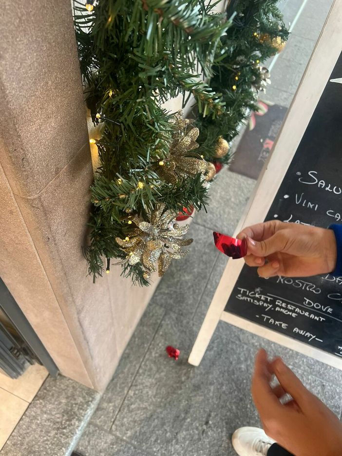 Bra: rubati gli addobbi natalizi di fronte al negozio “Frutta Rey” di piazza Carlo Alberto [FOTO]