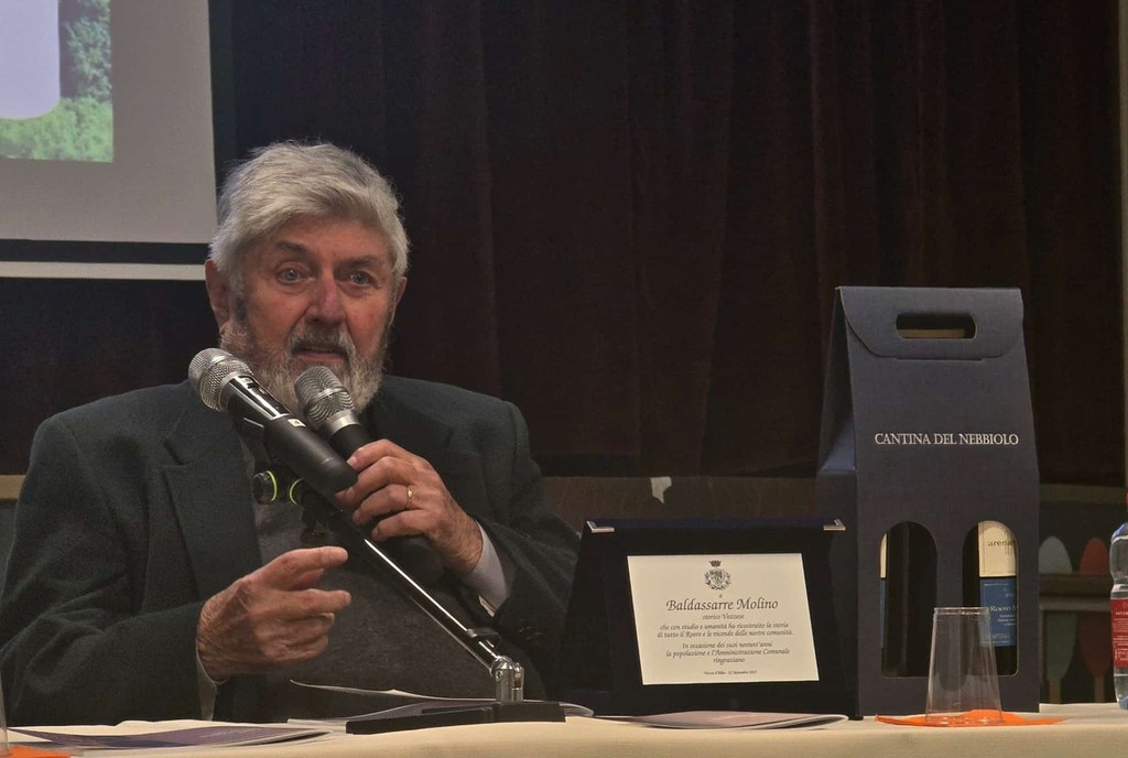A Baldassarre Molino è stata consegnata dall’amministrazione comunale di Vezza d’Alba una targa per il contributo storico e culturale dato alla comunità e un magnum di 'Roero Arneis 2024' da parte della Cantina Sociale di Vezza d’Alba, in ragione dei contenuti storici donati alla civiltà del vino Roero.