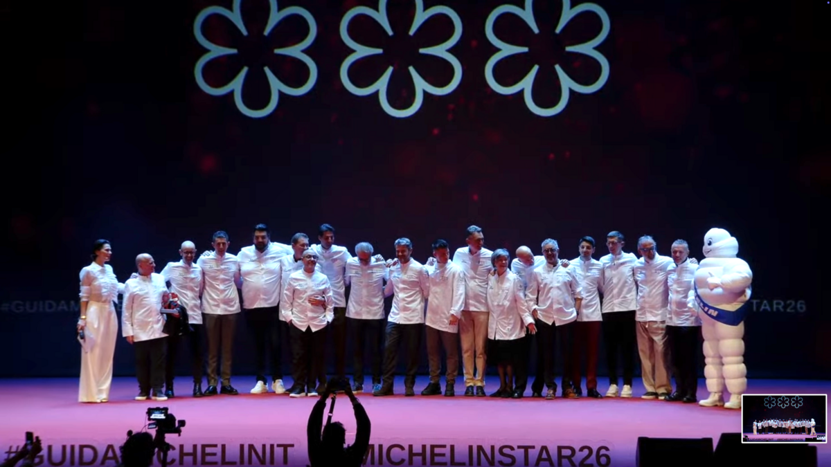 La cerimonia di presentazione della Guida Michelin 2026 è terminata pochi minuti fa con l’assegnazione delle Tre Stelle Michelin allo chef Michelangelo Mammoliti, del "La Rei Natura" di Serralunga d’Alba, nelle Langhe.