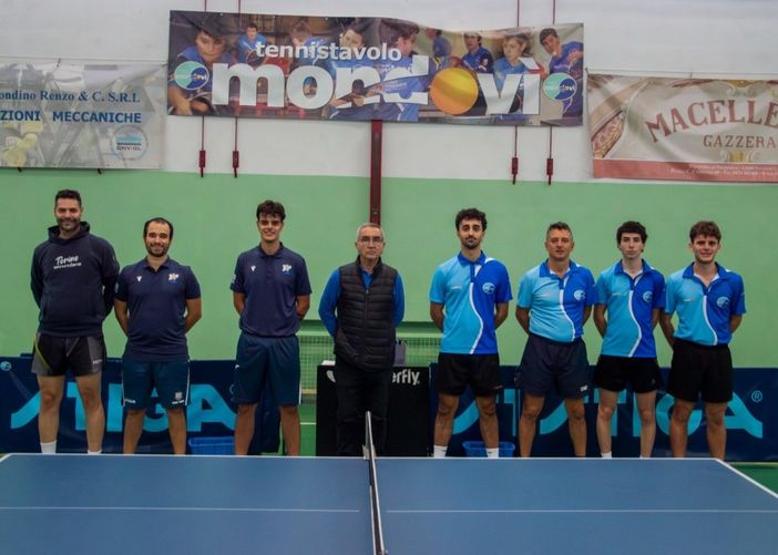 Pronostico rispettato per la compagine del TT Macelleria Gazzera Mondovì che ospitava il TT Torino B, compagine a maggioranza femminile attualmente fanalino di coda. Parte bene Fragolino che in tre set si sbarazza facilmente di Andrea Passuello, il pareggio ospite è di Ginevra Donetti che viene impegnata f ino al quinto da Daniele Sannini. Luca Boscolo allunga in quattro set su Serena Rossati, ma è Passuello a pareggiare in tre set su Basso. Non ha vita facile Fragolino sulla Rossati, e deve chiudere al quinto, più agevole Boscolo 3-0 su Donetti, il quinto punto decisivo lo porta Basso in 5 set sulla Rossati. Macelleria Gazzera in testa a punteggio pieno, 6 punti come Area 172 Savigliano auto ma con una partita in meno. Prossimo impegno a Verzuolo contro A4 Acqua Eva.