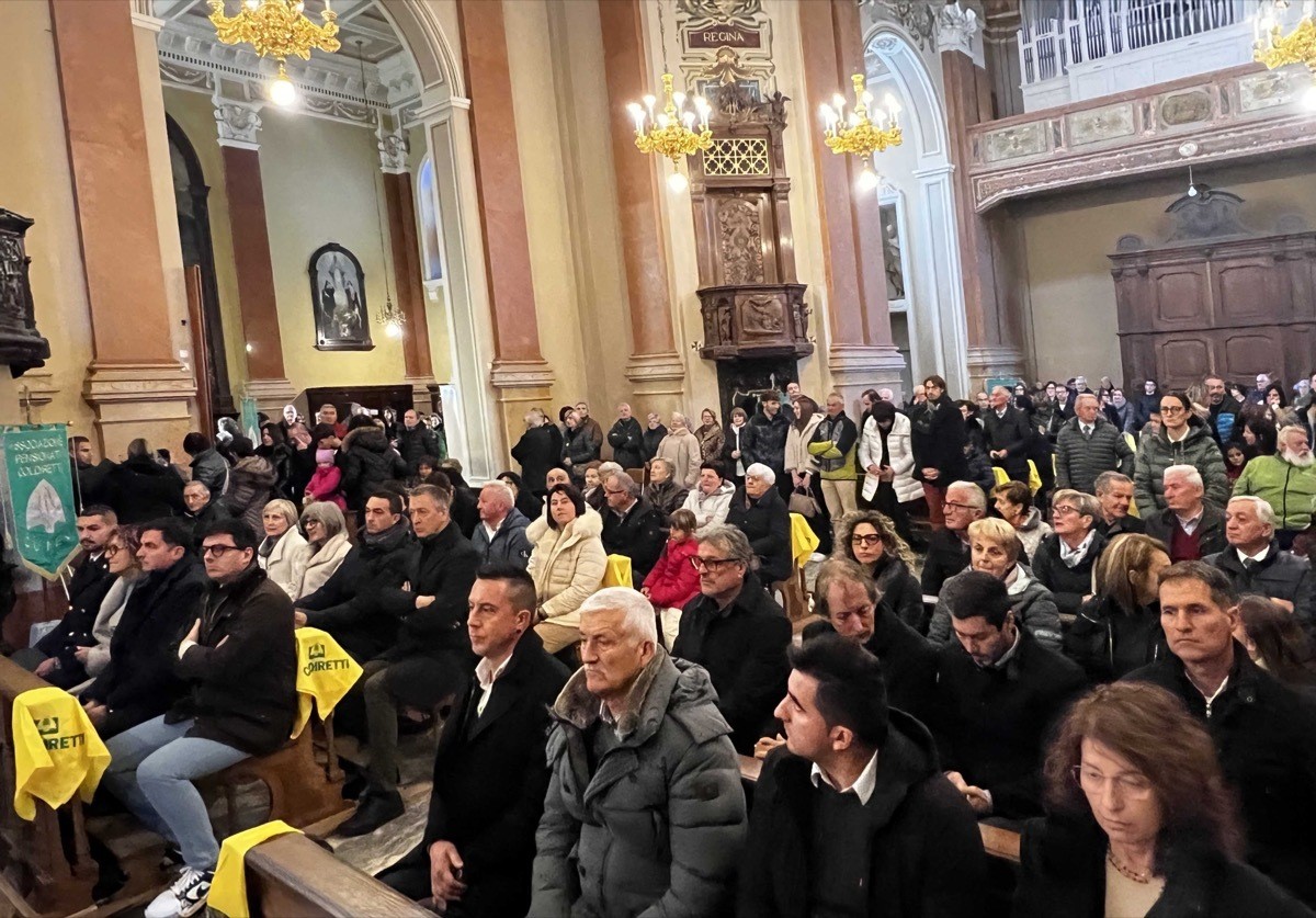 A prendere parte al momento di riflessione e preghiera è stata una folta rappresentanza di soci Coldiretti, con il Presidente provinciale Enrico Nada, il direttore Francesco Goffredo, il delegato provinciale Giovani Impresa Marco Bernardi, la responsabile Donne Coldiretti Monia Rullo, il presidente dell’Associazione provinciale Pensionati Romano Ficetti, insieme a tutti i presidenti e ai segretari di Zona.
