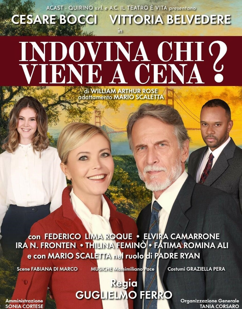 Guglielmo Ferro riporta in scena la stupenda commedia che fu interpretata (al cinema) dai due mostri sacri Katharine Hepburn e Spencer Tracy. Il tema, quello di un matrimonio misto, allora fece scalpore nell’America di fine anni ’60, ma oggi è più che mai di attualità in una società sempre più multietnica. Il soggetto di William Arthur Rose ha quasi mezzo secolo, ma anche grazie all’adattamento di Mario Scaletta si presenta come un testo fresco e attualissimo. “Quando mi hanno proposto questo lavoro ne sono subito stato entusiasta – ha detto Guglielmo Ferro. Si tratta di un testo brillante, che però trasmette un messaggio a forte connotazione sociale. L’adattamento di Scaletta ha inoltre sfrondato tutta una parte strettamente legata agli anni ’60, per farne un testo estremamente attuale, anche nel linguaggio più crudo e diretto. Si parla dunque di differenze e di comprensione, termine, quest’ultimo, che preferiamo a quello più restrittivo di tolleranza”.