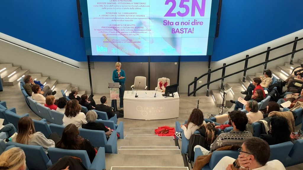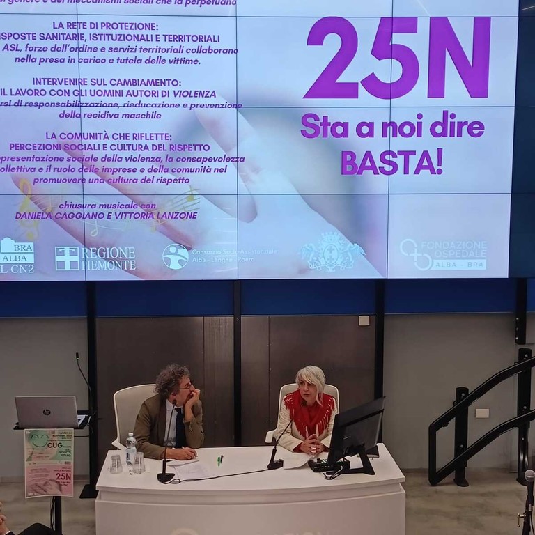 All’interno di questo quadro, lunedì 24 novembre, presso l’Auditorium dell’Ospedale Michele e Pietro Ferrero di Verduno, ha avuto luogo la Tavola Rotonda “Sta a noi dire BASTA!”, dedicata al tema della violenza di genere, con interventi e approfondimenti rivolti a professionisti, cittadini, istituzioni e operatori dei servizi.