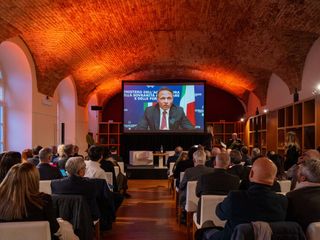 È stato un evento che non poteva essere confinato nelle categorie di conferenza, festival o rassegna: ENO7 è stato un racconto collettivo. Ogni sala del Castello, ogni scala, ogni angolo sembrava un punto di incontro tra passato e futuro. L’apertura, nel Tempio dell’Enoturista, ha confermato subito il respiro globale dell’iniziativa. Dopo i saluti istituzionali, con il sindaco di Barolo Fulvio Mazzocchi, il ministro dell’Agricoltura Francesco Lollobrigida, la Regione Piemonte con il presidente Alberto Cirio e l’assessore all’Agricoltura, al Turismo e al Commercio Paolo Bongioanni, la giornalista di Class Editori (caporedattrice di Class TV Moda) Tarsia Trevisan ha offerto una panoramica sul mondo del vino, dallo scandalo metanolo degli anni ’80 al riconoscimento Unesco del 2014, passando per la crescita internazionale degli anni ’90 e la strutturazione dei servizi turistici arrivata nel primo decennio del nuovo millennio.