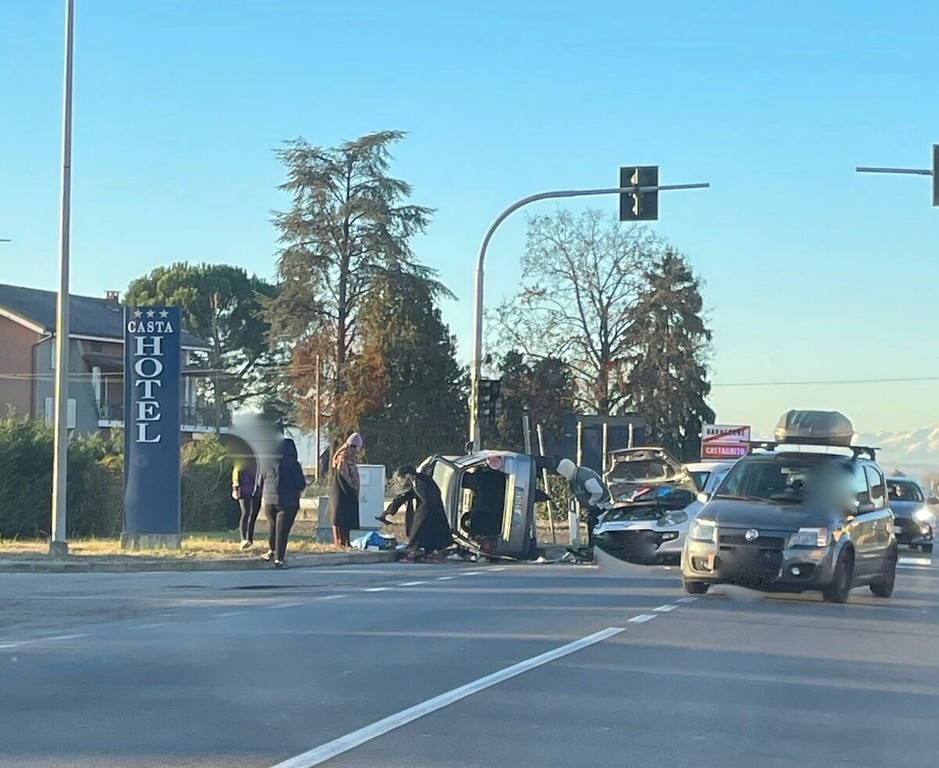 Incidente questa mattina, attorno alle 8, proprio all'ingresso nel comune di Castagnito, in corrispondenza della filiale di Banca d'Alba.