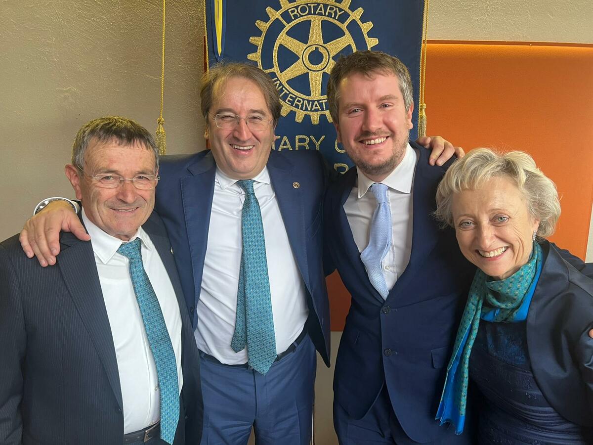 [Franco Allario, Maurizio Giacosa, Luigi Minasso, Piera Arata (Presidente del Rotary Club Alba)]